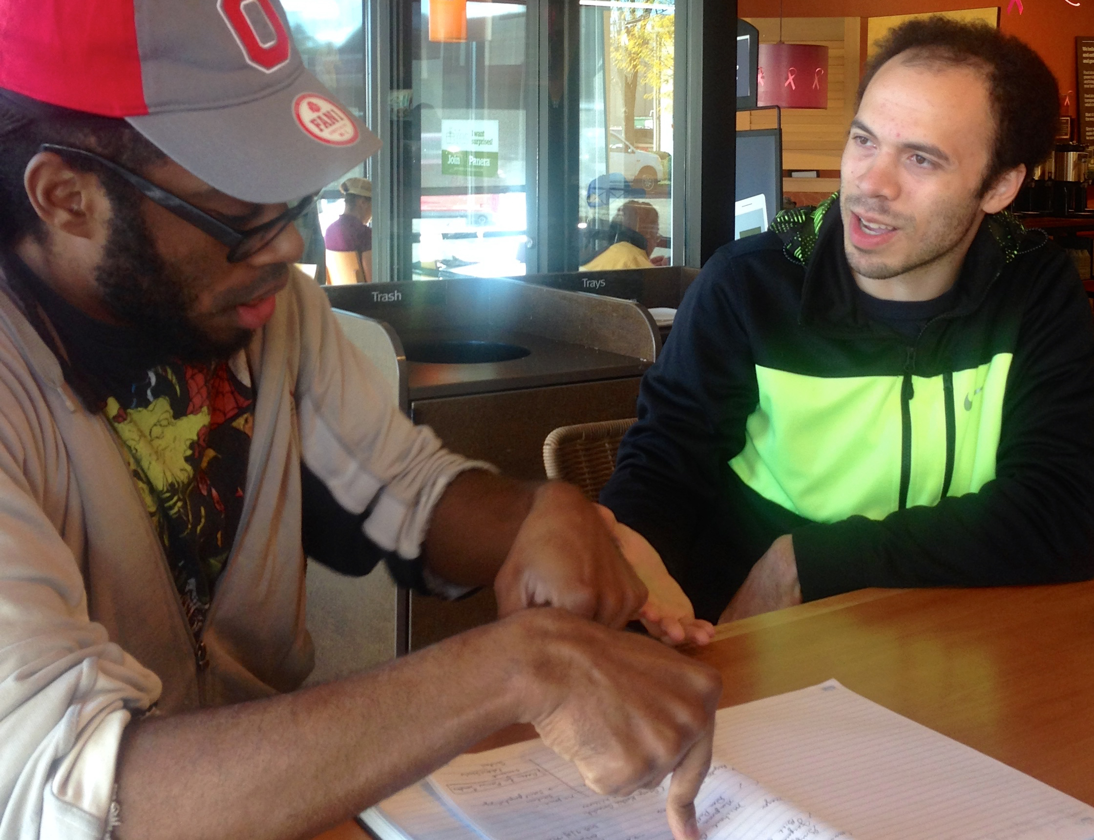 Nuponu Gorneleh and Griffin Derr explaining their campaign to be elected to public office in Kettering