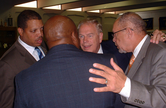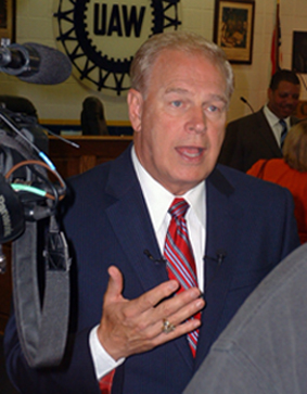 Ohio’s Governor, Ted Strickland, was in Dayton today at the UAW union hall on Alwildy Ave, close to Edwin C Moses Blvd. About 60 people were in attendance. Strickland gave a short speech making the case why he should be reelected and why the election of his opponent, Republican, John Kasich, would spell disaster for Ohio.