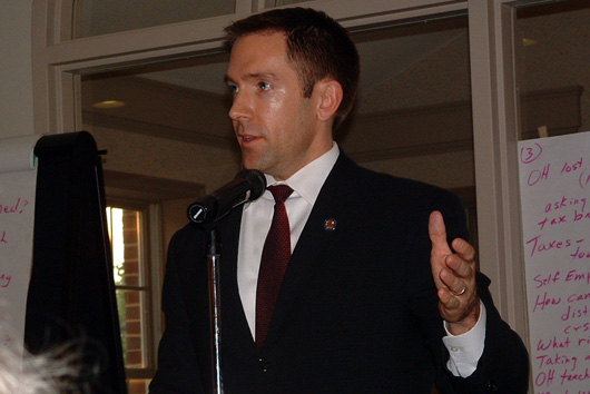 Jim Butler, serving as representative for Kettering OHD 37, was the only speaker who mentioned that SB-5 would eliminate the “fair share fee” for non-union public employees. As it is now, most public employee contracts call for nonunion workers to pay a fee that is almost equal to union dues. Butler said that having freedom to not join a union is an “important freedom.”