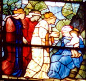 One of the windows in the Boston Trinity Church, built by Phillip Brooks, show the three wise seekers of truth offering gifts to the baby Jesus.